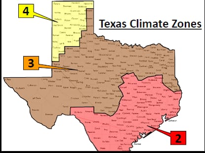 Texas is divided into three climate zones according to the 2018 IECC: